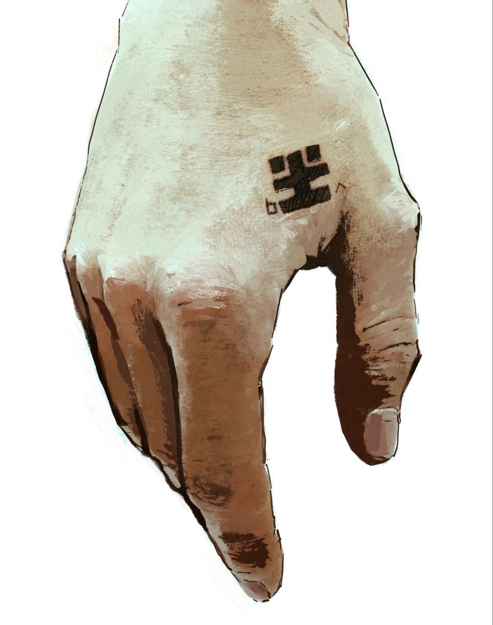 Kaitlin: The Mark is a government issued tattoo on the right hand of Atrian Citizens. The Mark is designed to help convey information about the individual; different designs on the Mark indicate if someone has medical training, security clearances, military history, or more. Additionally, the technology of the Mark tattoo allows it to be scanned! Citizens just scan their hand and the Mark tells the scanner whatever it needs. It can bring up medical history when at the doctors, or allow Citizens to unlock a locker at their place of work. It also works to access a Citizen’s bank, so a simple scan of their hand is all they need to buy a nice drink or pay for a new sofa. It’s like identification, an all-use key-card, and a bank card all in one!